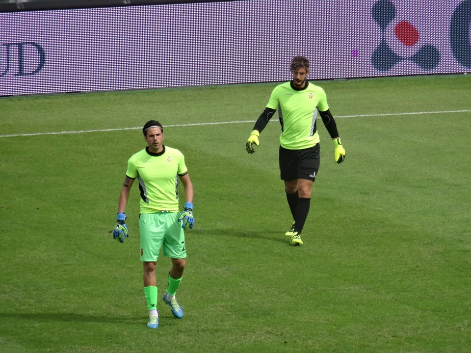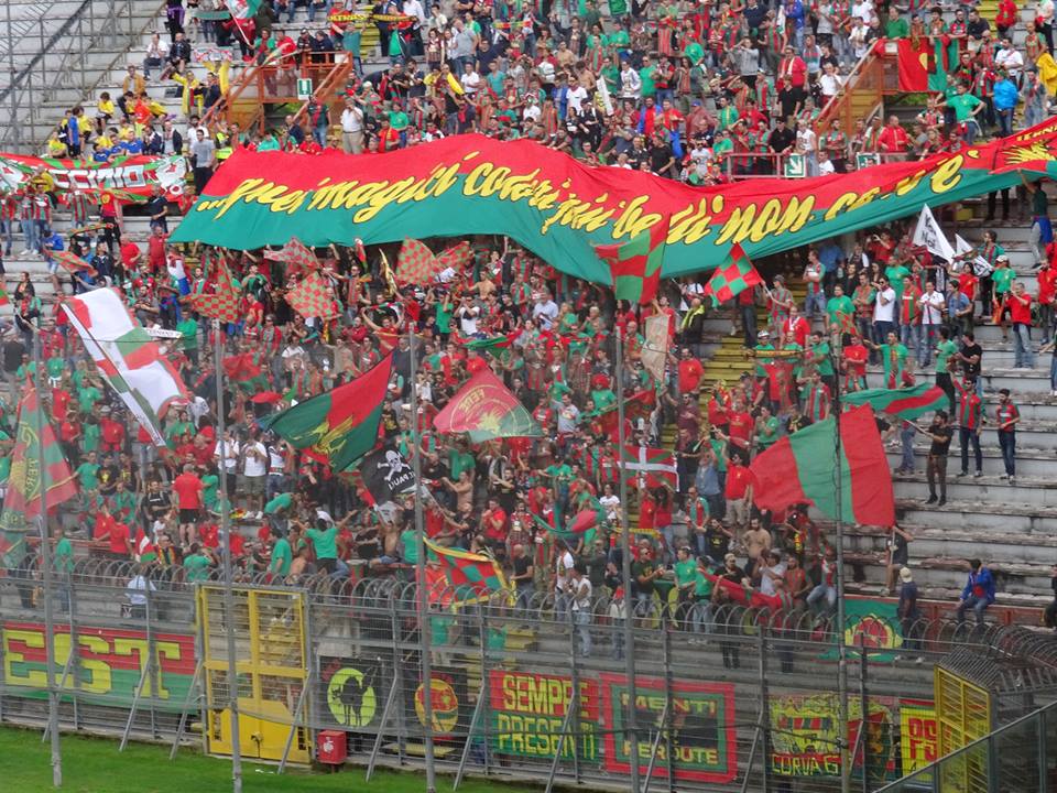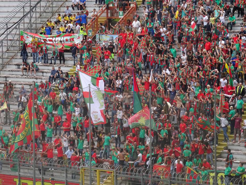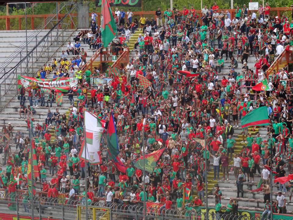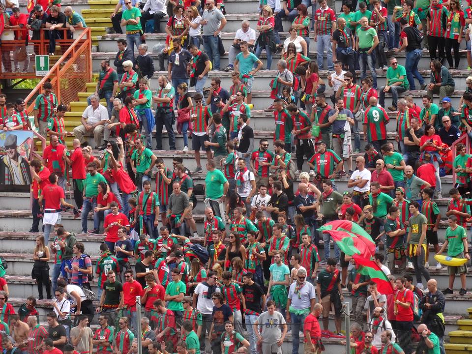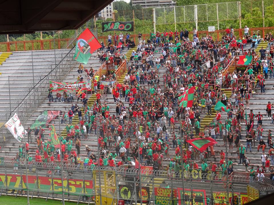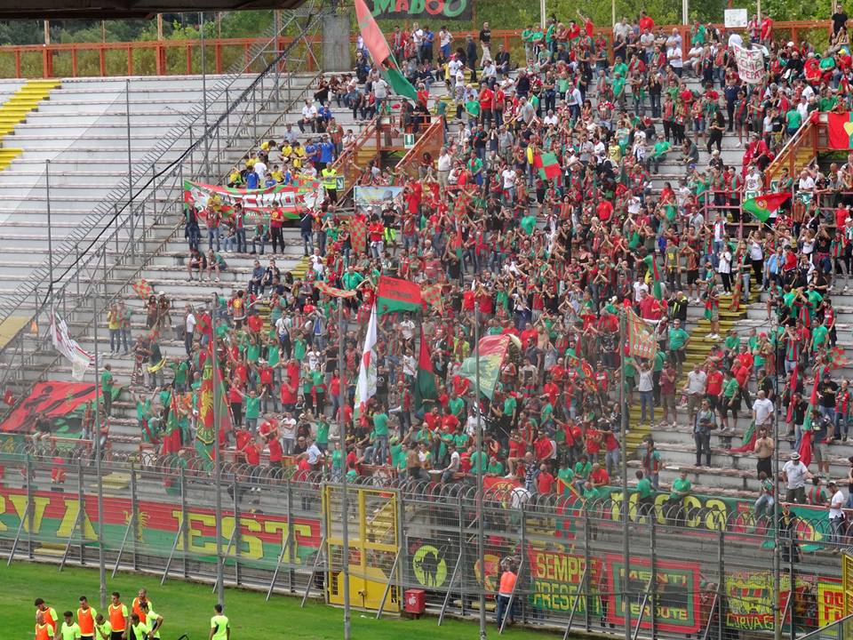 14:15 le foto dei tifosi rossoverdi presenti al Renato Curi, inizia il riscaldamento Raffaele Di Gennaro, nella foto con Simone Aresti