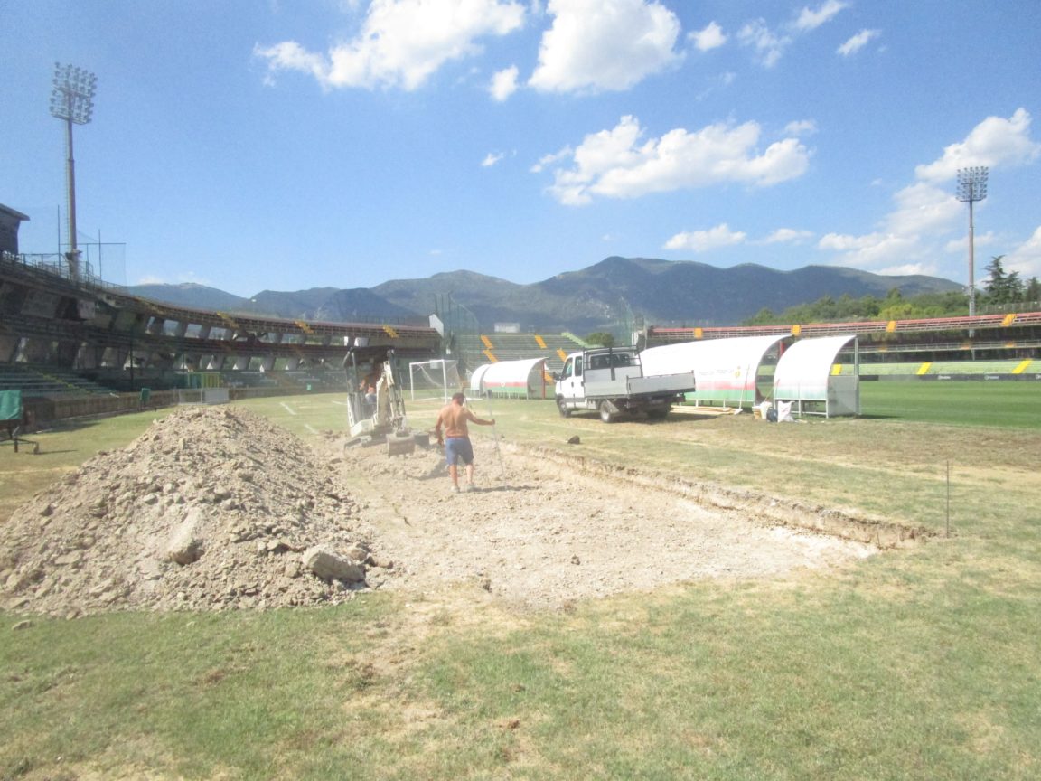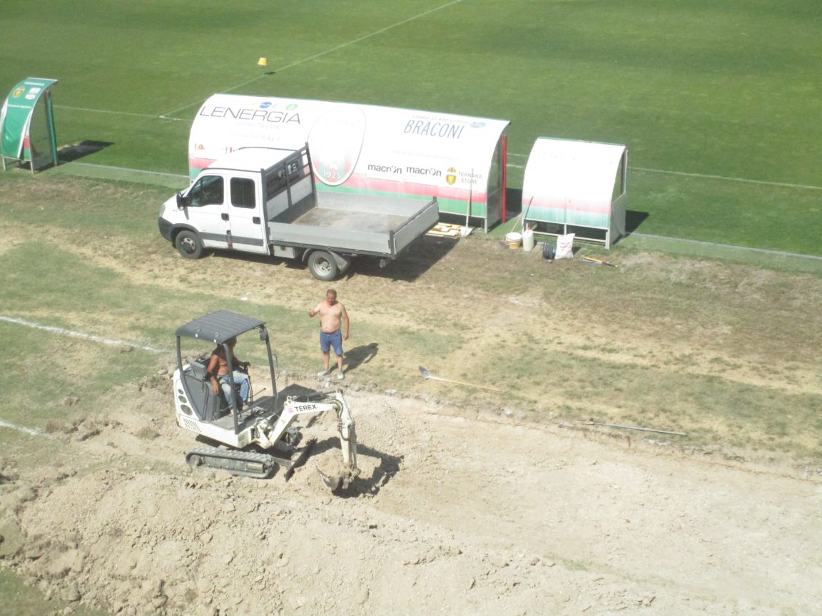 Sono iniziati i lavori allo stadio Libero Liberati per l'interramento delle panchine. Una novità già annunciata dal presidente Ranucci e che ora si sta realizzando. L'adeguamento consentirà ai tifosi della Tribuna A di poter assistere alle gare a piena visibilità. Si sta scavando una buca, distante dal perimetro, profonda 70 centimetri, lunga cinque metri e larga poco meno di tre