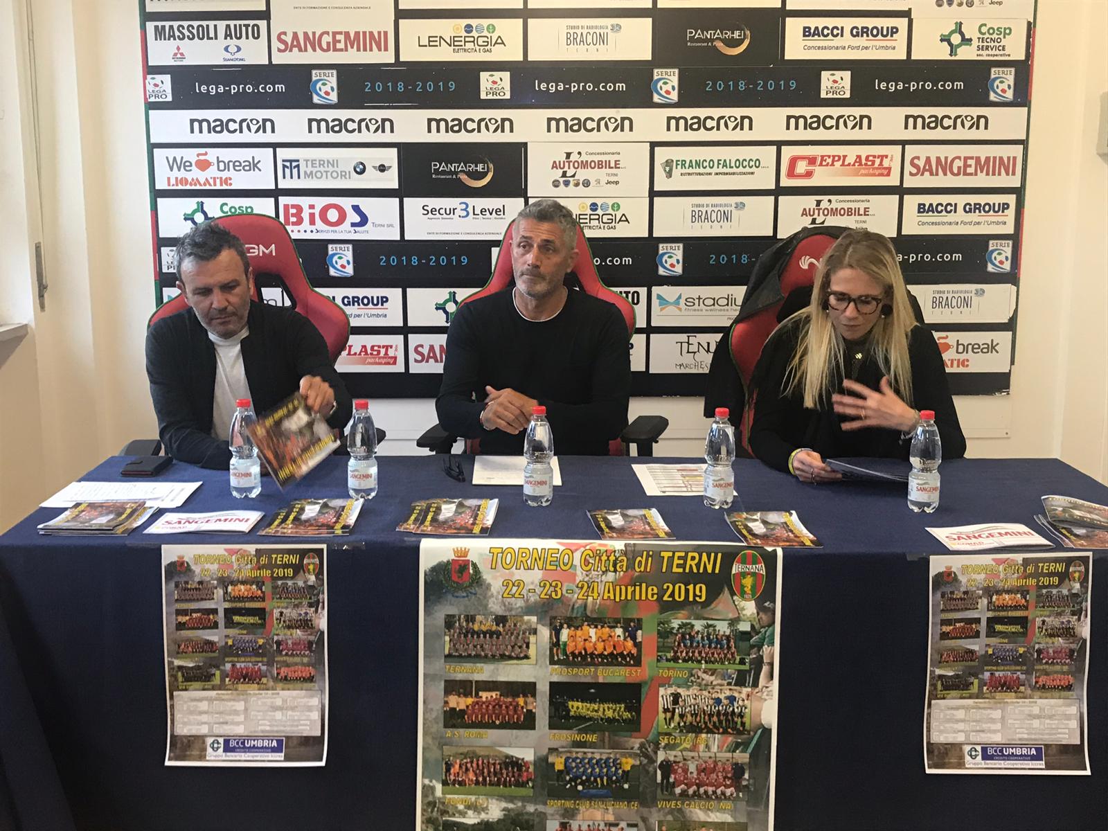 E' stato presentato, nella sede di via della Bardesca, il 1° torneo Città di Terni, promosso dalla Ternana calcio. Dodici squadre al via per un evento, dedicato ai 2005/2006, che si svolgerà dal 22 al 24 aprile presso i campi di Sant’Antonio, allo Strinati in via Vulcano con la finale in programma al Liberati. Presenti l'assessore allo Sport Elena Proietti, il responsabile del settore giovanile rossoverde, Silvio Paolucci, il responsabile organizzativo Saverio Giacchetti ed il Direttore sportivo della Ternana Luca Leone. Al torneo hanno aderito Roma, Frosinone, Steaua Bucarest oltre a sette squadre dilettanti.