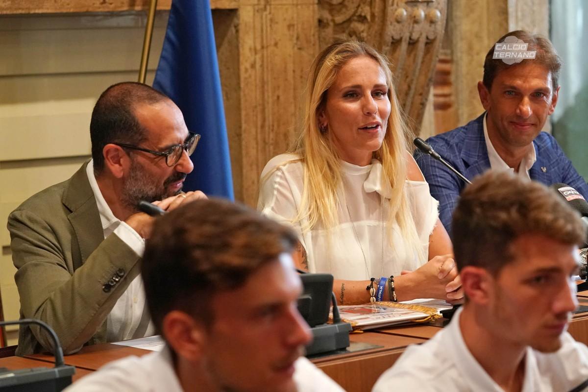17.20 Assessore allo sport Elena Proietti: "La scorsa stagione abbiamo affrontato insieme una battaglia, per il ripescaggio, che ci ha unito tutti. Quest'anno la battaglia ci sarà solo sul campo. E' bello essere in questa sala oggi, aspetto con trepidazione le maglie. Mi emoziona vedere sia politici della maggioranza e dell'opposizione ma tutti uniti sotto i colori rossoverdi. Ho accolto l'iniziativa della "motorinata"dei tifosi, quindi sarò anche io presente. In bocca al lupo a tutti "