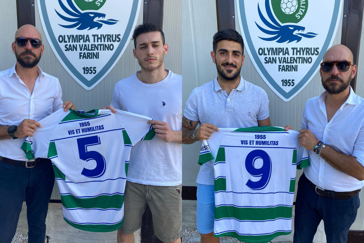 Il direttore sportivo dell’Olympia Thyrus S.Valentino Sandro Tasca insieme al team manager della prima squadra Pierluigi Bartolucci(nelle foto con i giocatori) annunciano l’ingresso degli importantissimi nuovi giocatori Federico Giubilei e Valerio Liurni. Giubilei un difensore centrale di sicuro spessore e Liurni(di proprietà Olympia) giovane e forte attaccante di qualità ed entrambi con grande voglia di far bene. Il presidente Corsi ha dichiarato: ”Già stavamo facendo molto bene la scorsa stagione e quest’anno non scherziamo,la squadra si è rafforzata”