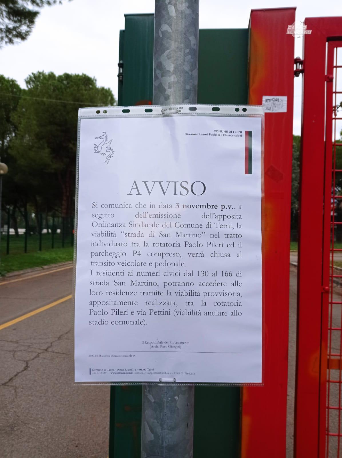 Con le disposizioni del provvedimento sono state chiuse le strade di attraversamento e tutta l'area del parcheggio davanti lo stadio. Da oggi dunque non si potrà più accedere dentro l'area di cantiere e gli abitanti di via San Martino transiteranno attraverso la strada predisposta lungo la recinzione di cantiere, lato stadio.