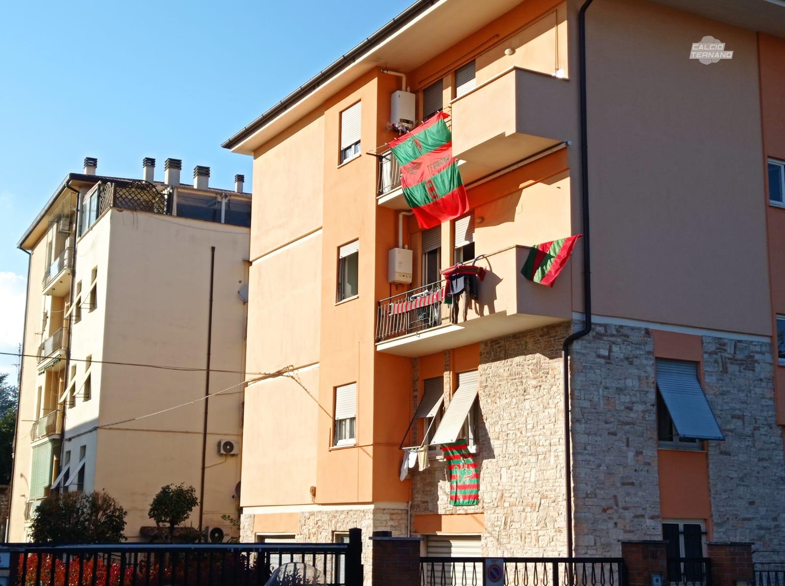 Ad un punto dalla matematica promozione in Serie B. E' stato sicuramente un pomeriggio ricco di emozioni per i tanti tifosi della Ternana che aspettavano di festeggiare il traguardo. Tuttavia, a seguito del successo conseguito dall'Avellino, c'è ancora da pazientare - quantomeno una settimana - per poter salutare il ritorno nella cadetteria. Intanto in centro città si respira comunque aria di comprensibile festa. Primi caroselli in città: clacson, bandiere, sciarpe e tanta voglia di omaggiare i beniamini con la maglia rossoverde. Notevole anche l'impatto coreografico in tantissime abitazioni. Una in particolare, l'abbiamo voluta fotografare, in copertina. Un intero palazzo rossoverde: davvero suggestivo e spettacolare l'idea di questi tifosi delle Fere. Insomma c'è ancora da pazientare, almeno sei giorni, ma giustamente l'entusiasmo è già incontenibile.