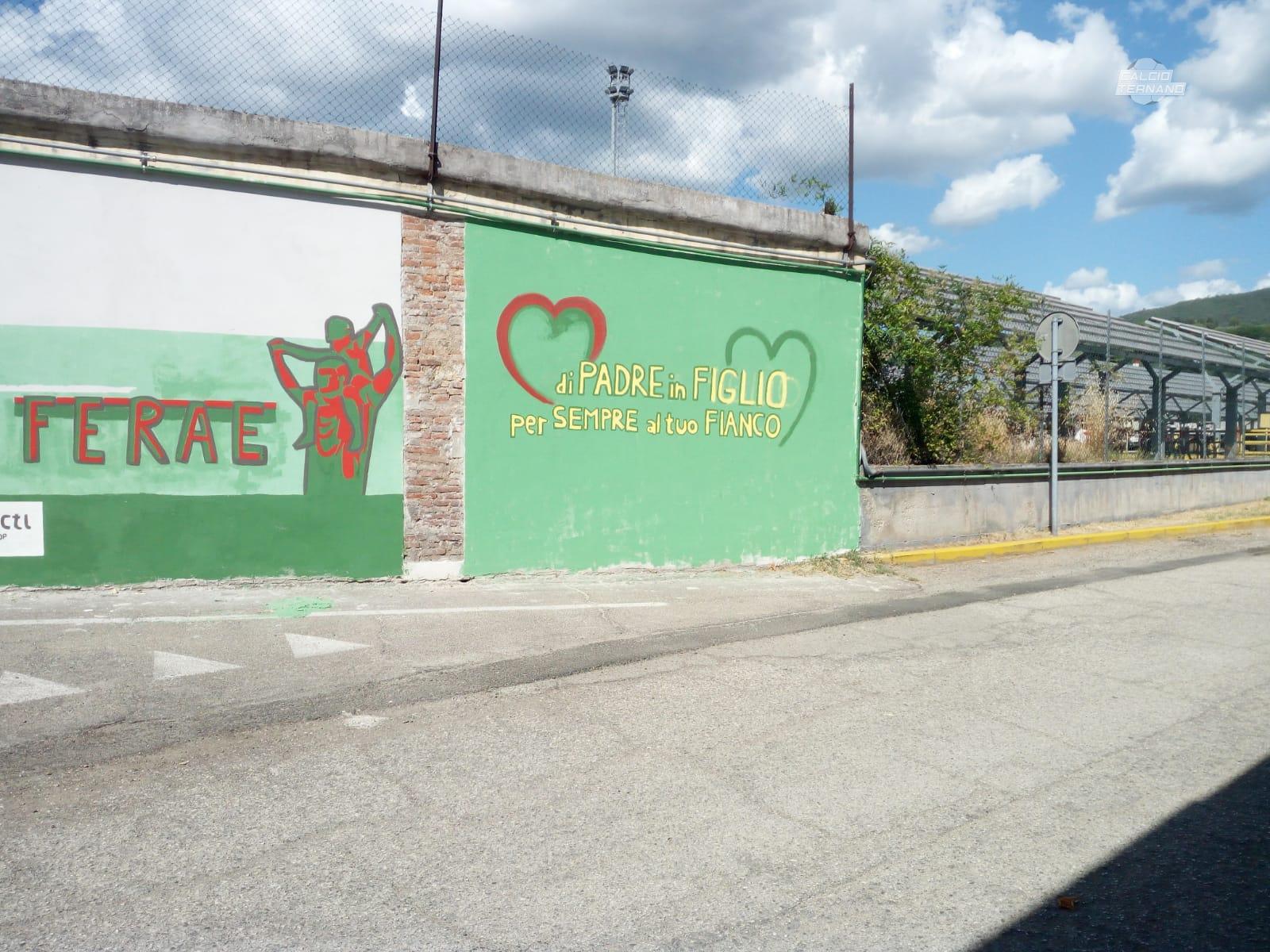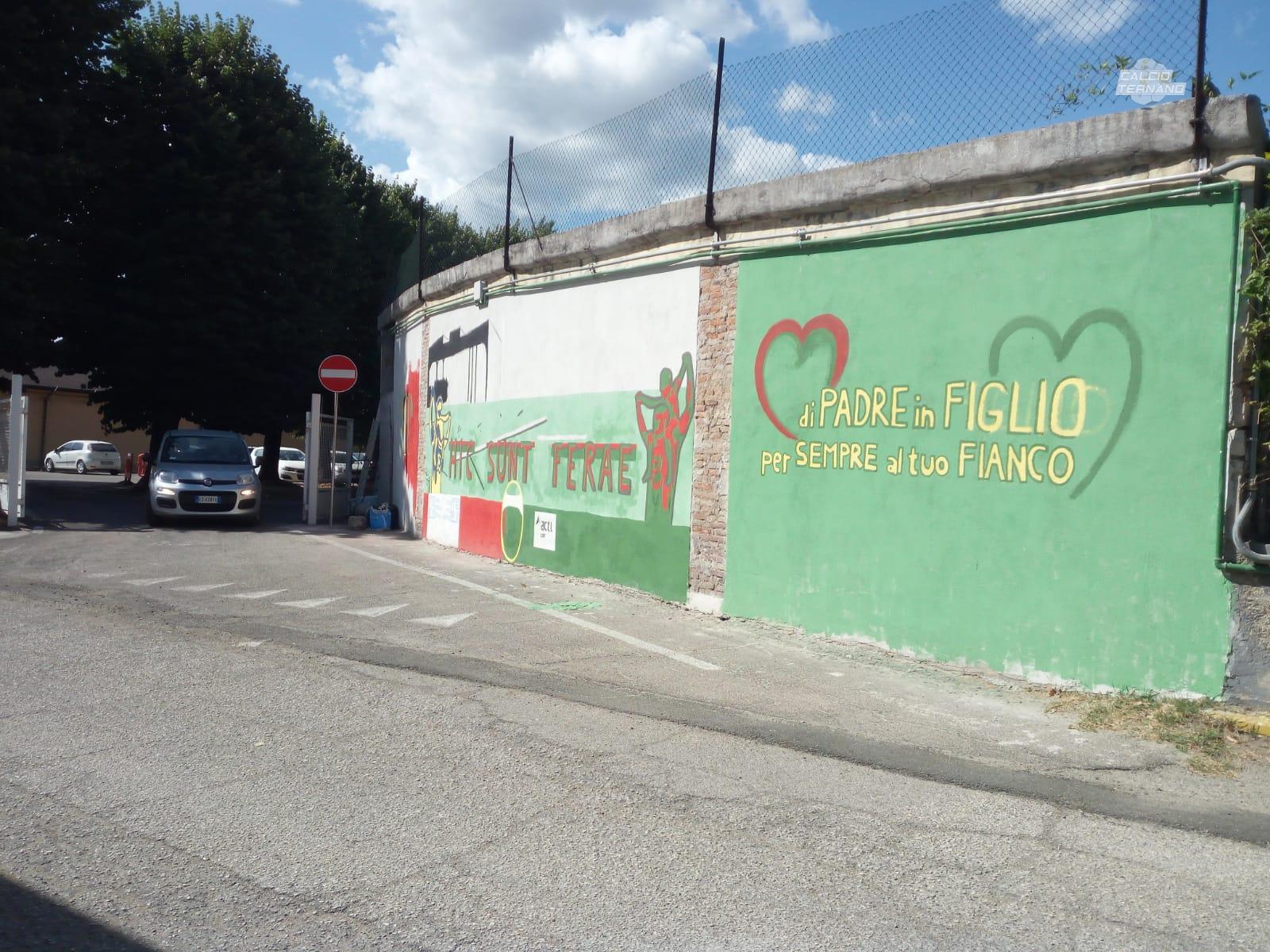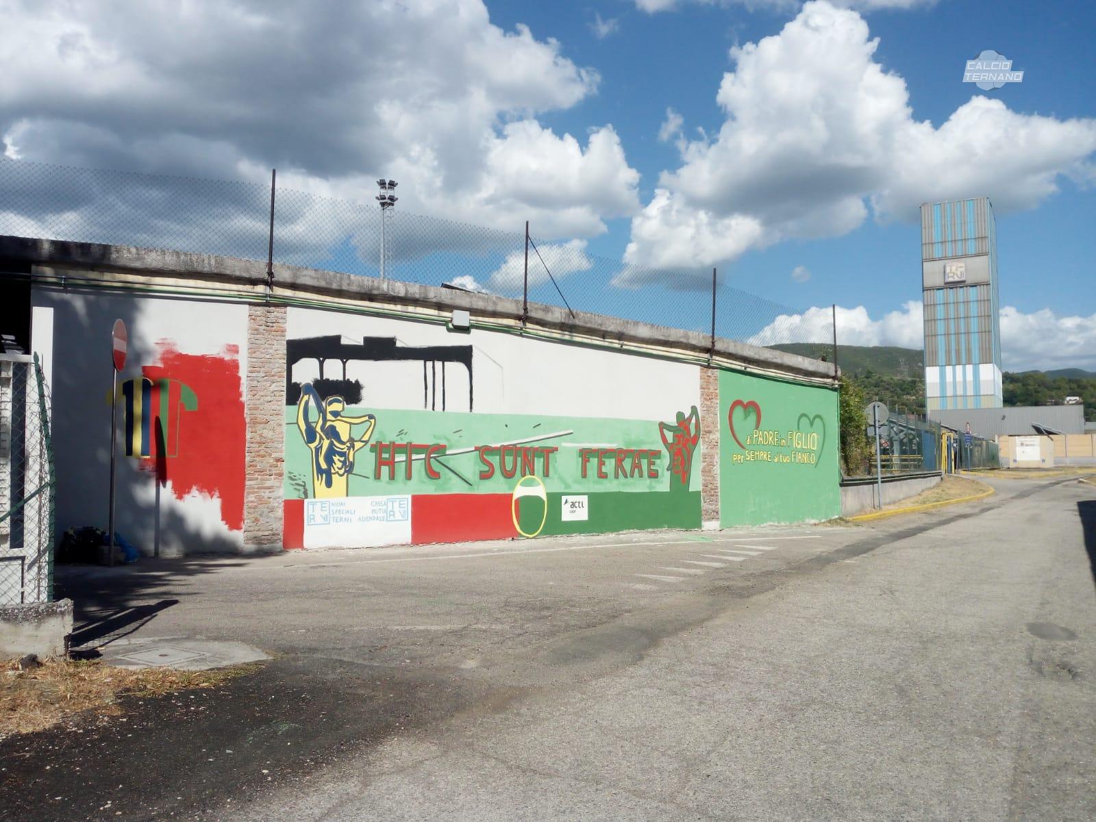 Una passione per la Ternana tramandata 'Di padre in figlio'. Il murale dipinto all'esterno della curva parabolica del viale Brin sta prendendo corpo. Come raccontato nei giorni scorsi dagli ideatori Daniel Pisanu e Luca Eusebio: "Il luogo scelto dà senso all’idea. Il murale è infatti dipinto, in sostanza, sull’unico muro rimasto in piedi dello stadio, il quale ospitò la Ternana a partire dal 1925 fino al 1969 e che venne successivamente trasformato in un parcheggio ad uso dell’acciaieria”. Mancano davvero pochi dettagli per poterlo ammirare in tutto il suo splendore. La galleria fotografica