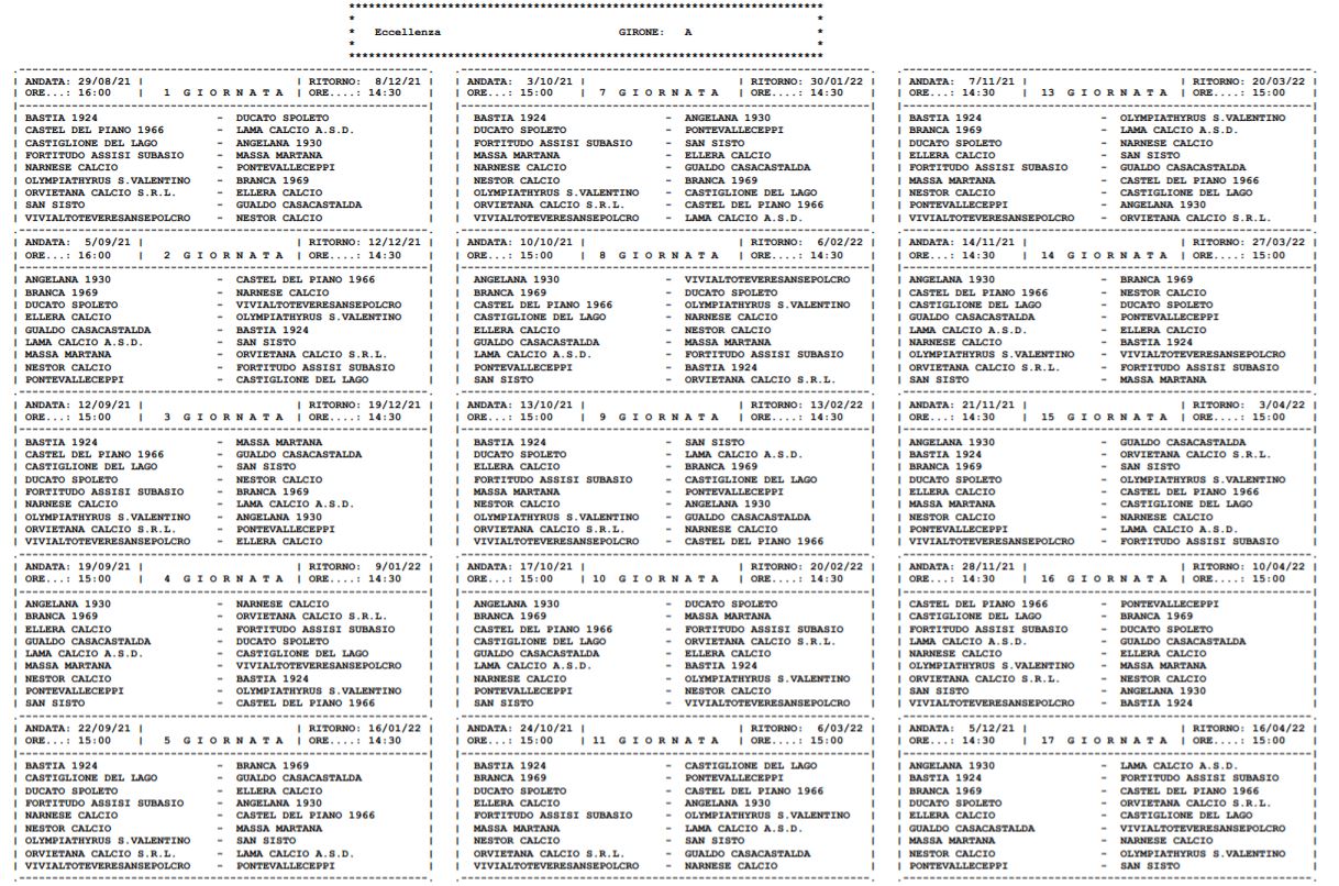 Il CRU ha diramato il calendario per la stagione 2021/22 di Eccellenza, le formazioni ternane che parteciperanno al massimo campionato dilettantistico umbro sono tre: Narnese, Orvietana ed Olympia Thyrus.