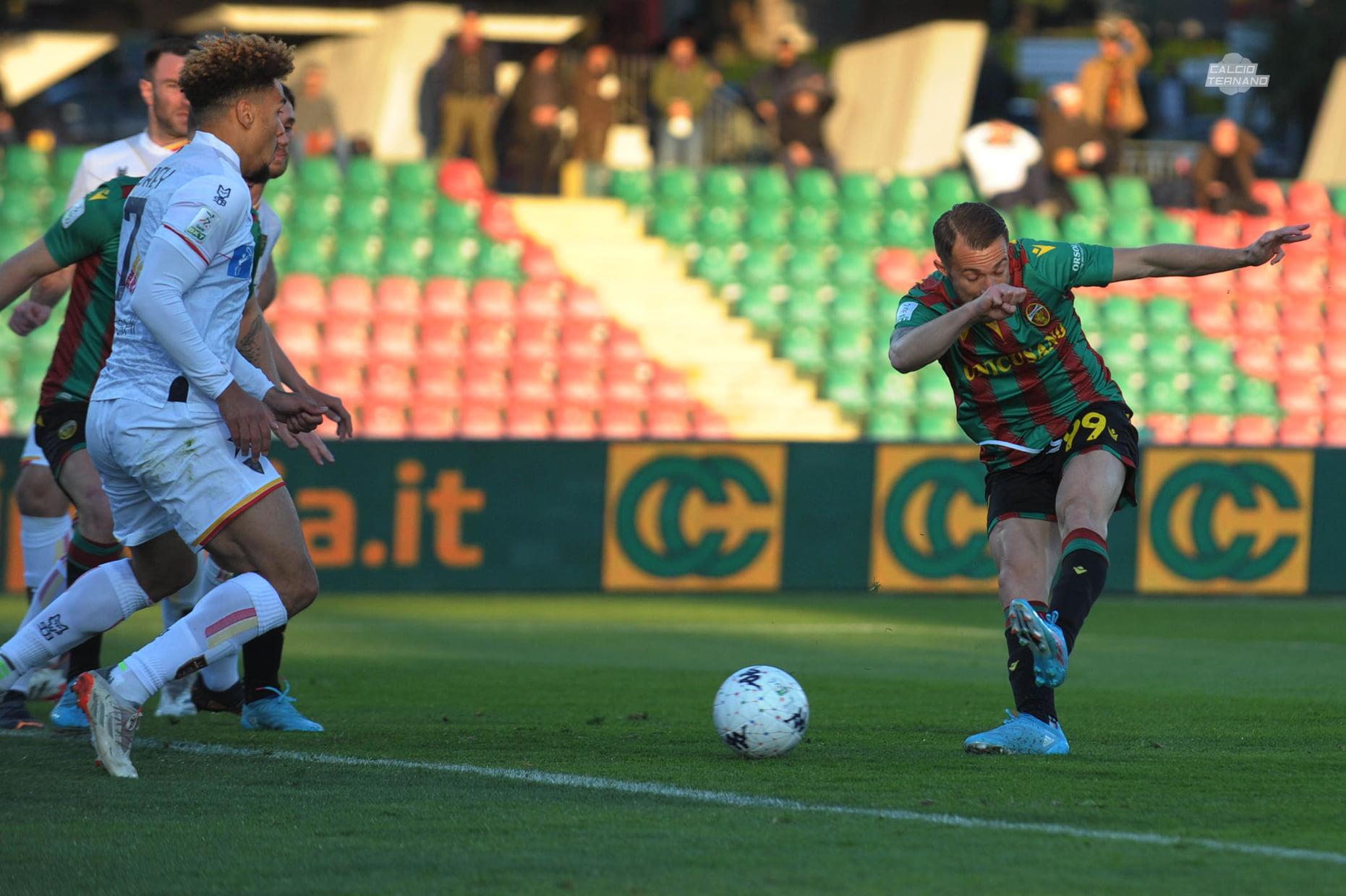 9' risposta delle Fere con un tiro di Proietti da fuori area deviato che fa la barba al palo alla sinistra dell'ex Bleve, calcio d'angolo per la Ternana