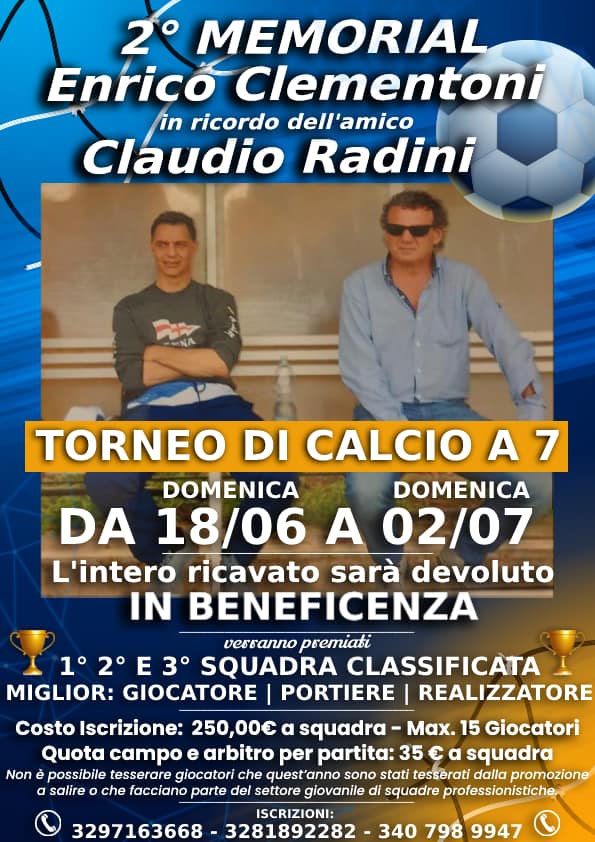 Un torneo per ricordare Enrico Clementoni e Claudio Radini. I due dirigenti, prima della Grs Terni e poi della Grs Terni Papigno, sono entrambi prematuramente scomparsi. Il torneo di calcio a 7 si svolgerà presso gli impianti sportivi della Nuova Accademia Terni e della Passepartout dal 18 giugno al 2 luglio 2022. Il ricavato sarà devoluto interamente al comitato per la vita 'Daniele Chianelli' e alla famiglia del piccolo Edo.