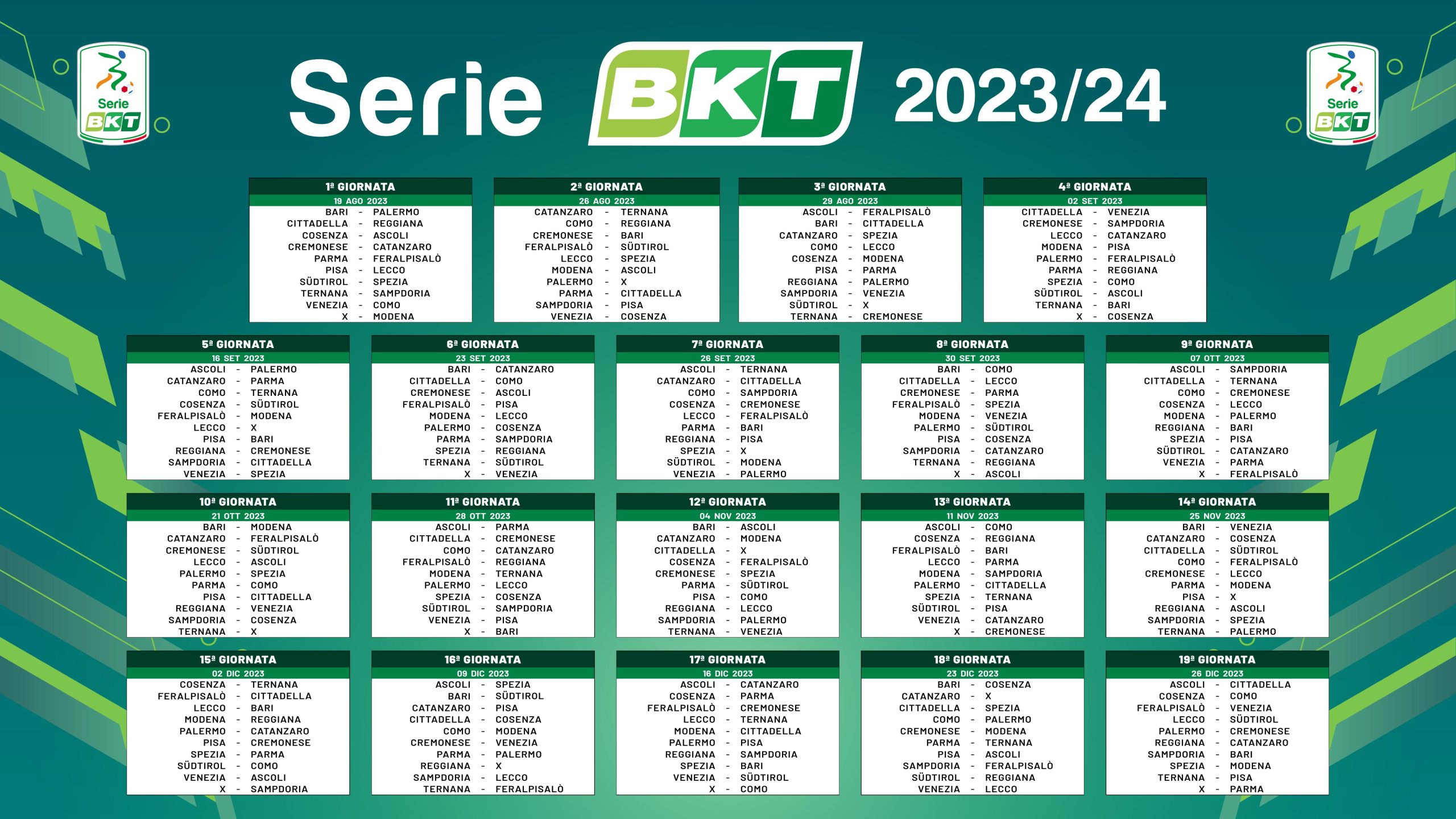 Il calendario del girone d'andata delle Fere: