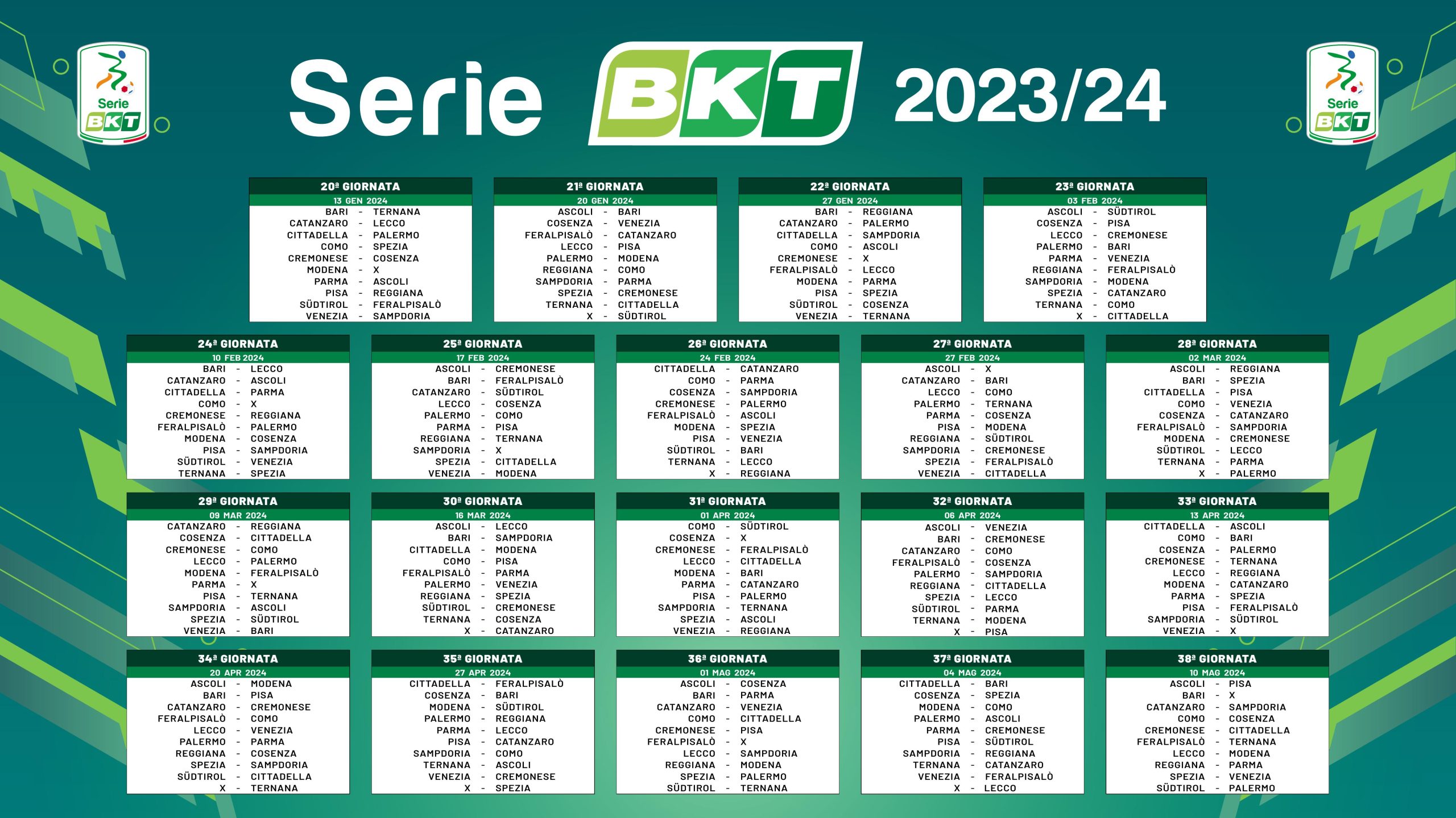 Il calendario del girone di ritorno delle Fere: