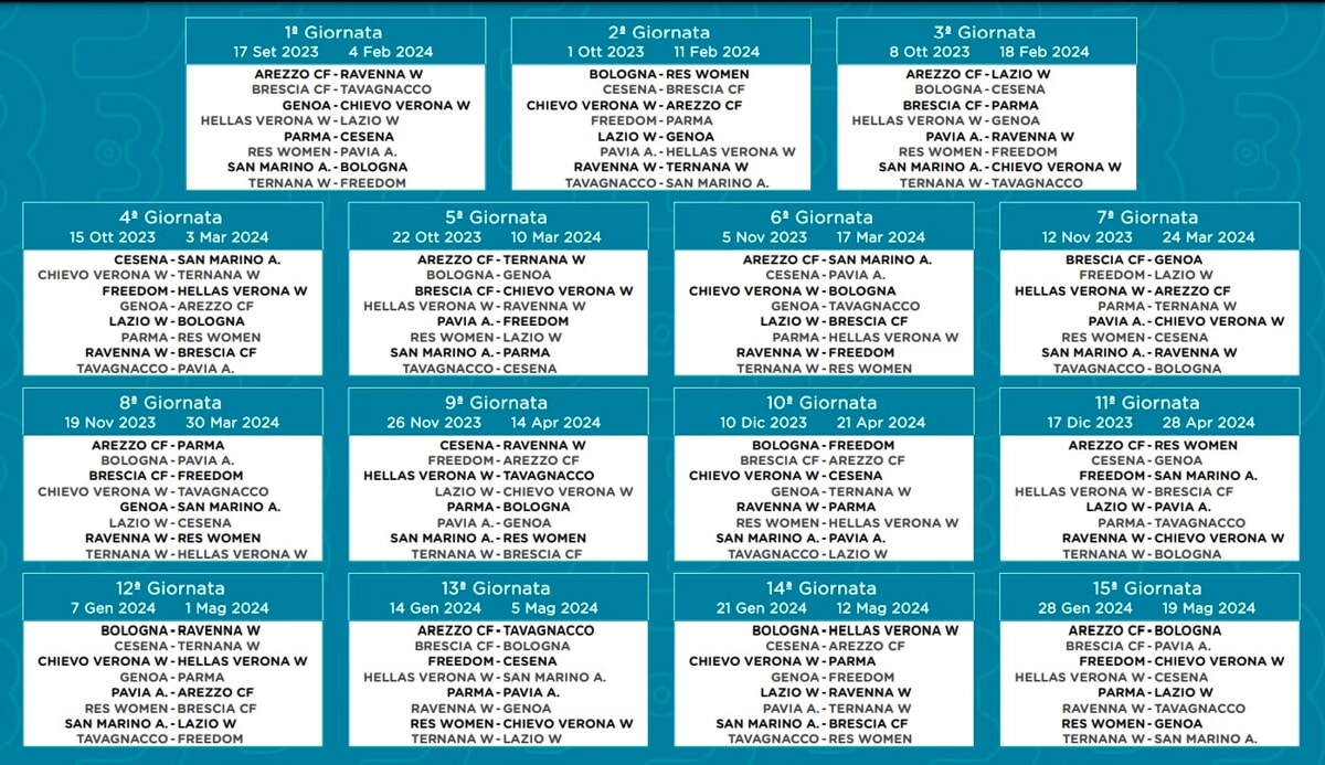 E' stato pubblicato il calendario della Serie B Femminile dove partecipa anche la Ternana. La prima giornata è in programma domenica 17 settembre 2023 mentre l'ultima il 19 maggio 2024. La squadra di Fabio Melillo esordisce contro la matricola Freedom, club cuneese ripescato alla prima apparizione in cadetteria. Le sfide di cartello saranno quelle contro il Parma e l'ex Spyridonidou alla settima giornata, dinanzi all'Hellas Verona all'ottava, al Genoa alla decima e alla Lazio alla tredicesima.