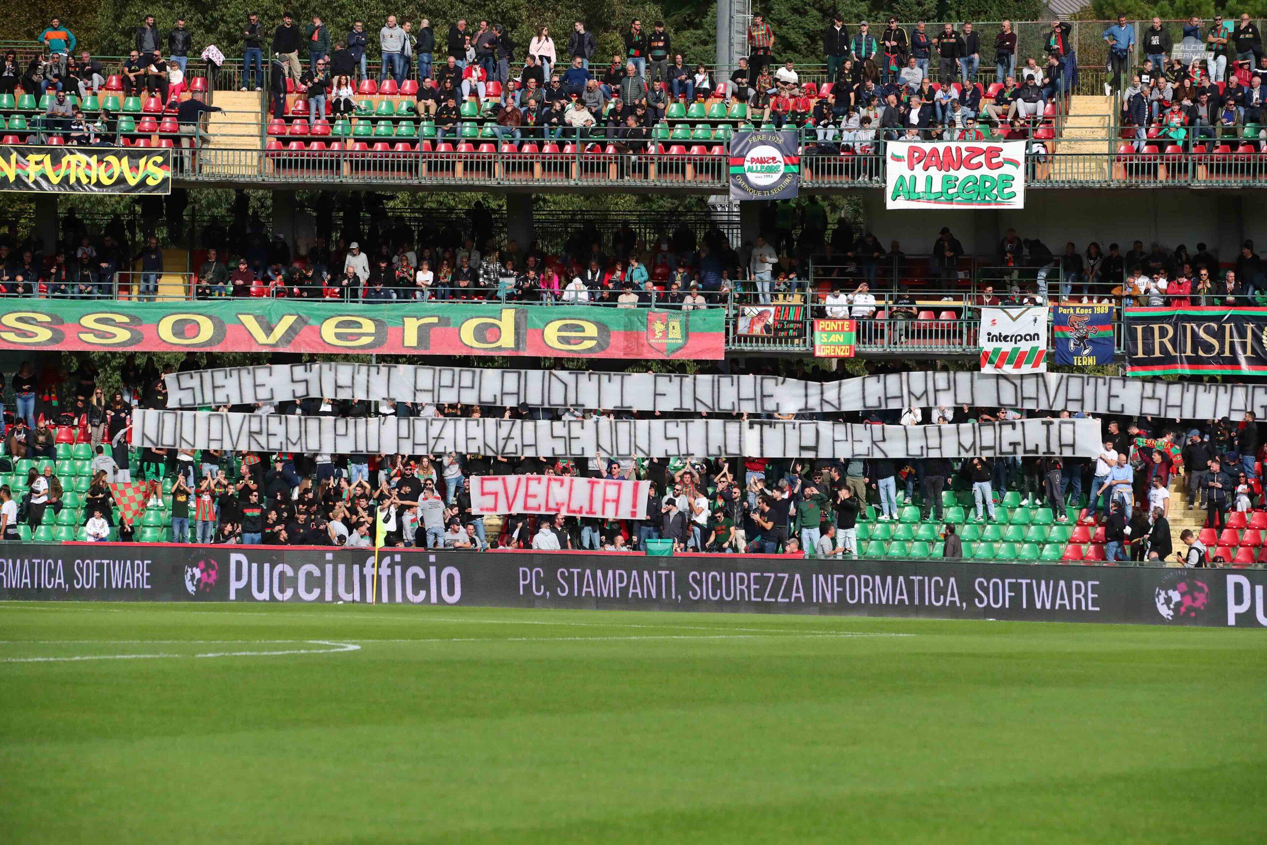 14:02 Striscione della Curva Nord: "Siete stati applaudi finchè in campo davate battaglia, non avremo più pazienza se non si lotta per la maglia. Sveglia!"