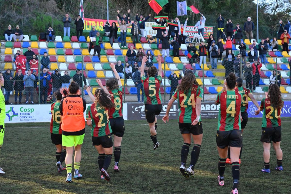 Le rossoverdi tornano in campo determinate e desiderose di fare risultato. Il portiere Rusek si supera su Pirone. Al 75’ l’attaccante colpisce la traversa prima del pari di Pellegrino Cimò, abile sottoporta a deviare la palla nel sacco. Nel finale la Ternana rischia di subire la beffa dapprima con un destro dalla distanza di Bonansea e poi con la girata a lato di Beccari. Al triplice fischio è grande la soddisfazione. Un punto che equivale ad un ulteriore passo verso la permanenza.