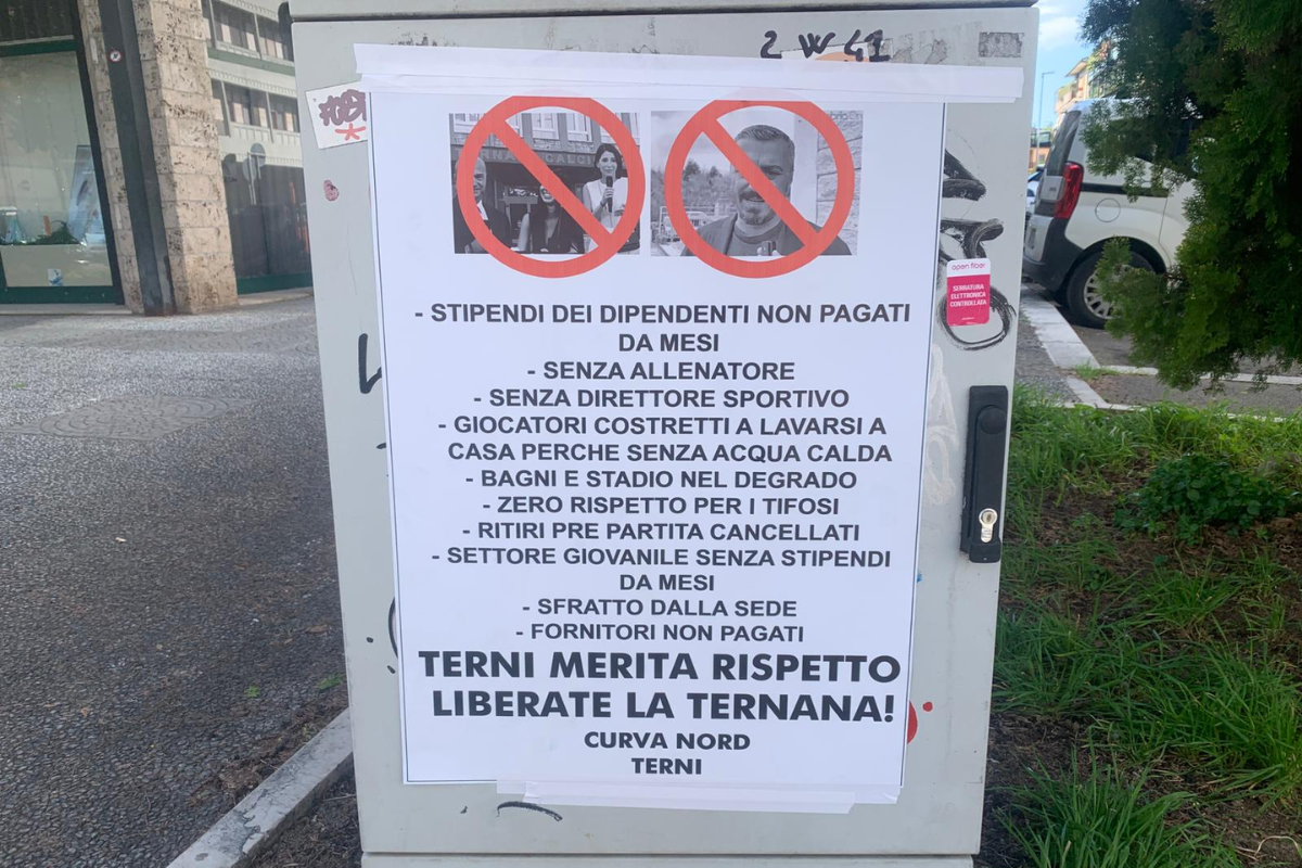 Nei manifesti si evidenzia la mancanza di un allenatore e di un direttore sportivo, il degrado dello stadio, i mancati pagamenti ai dipendenti e allo staff delle giovanili, la mancanza di acqua calda dopo gli allenamenti, i mancati pagamenti ai fornitori. La scritta "Liberate la Ternana" è evidente anche davanti ai botteghini del 'Liberati' e i manifesti sono a decine in ogni zona della città.