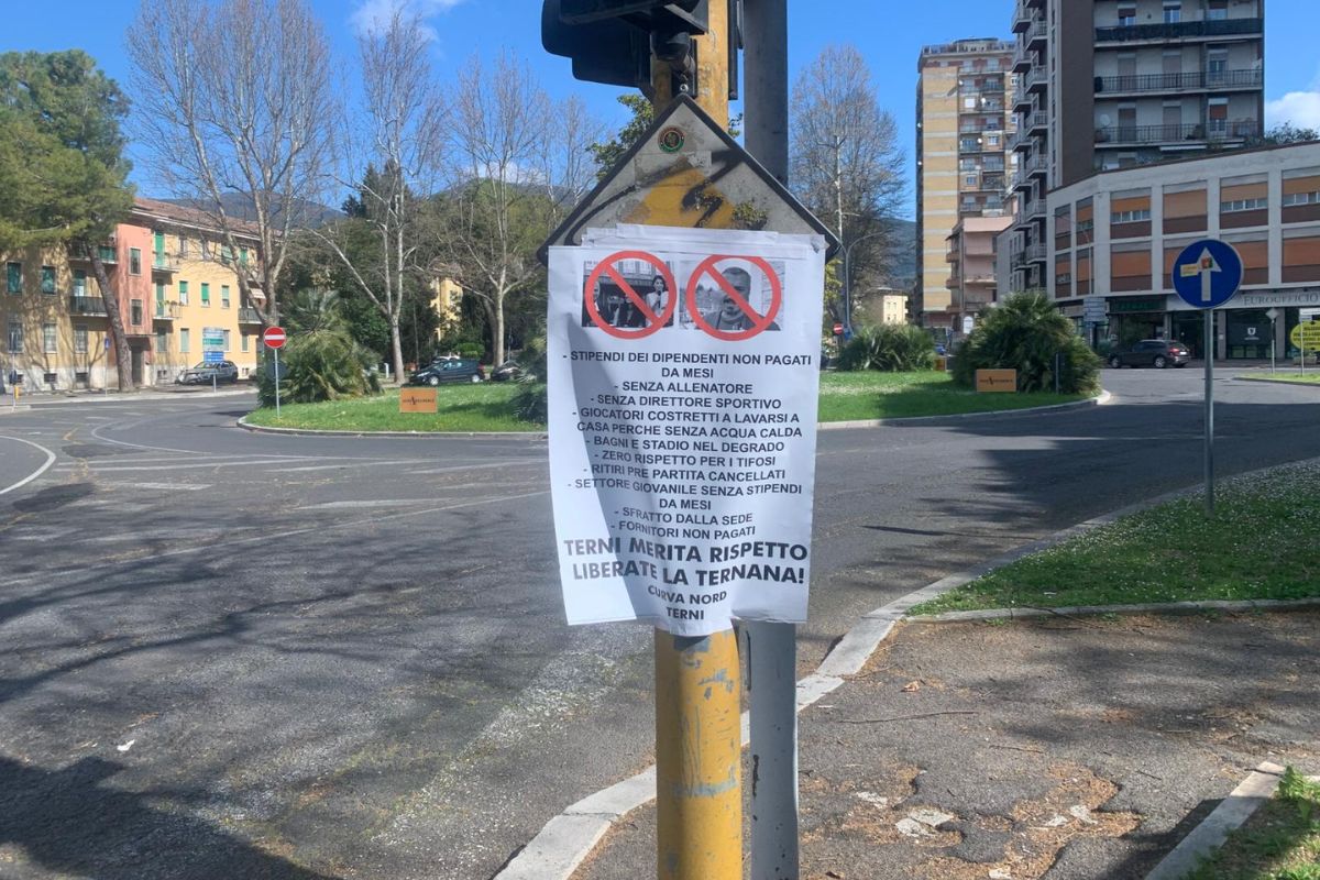 Continua la protesta della Curva Nord del tifo rossoverde in merito alla complessa situazione attuale della Ternana calcio. Nella notte tra venerdì 27 marzo e sabato 28 la città è stata tappezzata da manifesti e scritte che chiedono rispetto per la città e di "Liberare la Ternana". Bersagli della protesta - che già era cominciata nell'ultima sfida casalinga contro la Sambenedettese - sia la famiglia Rizzo, che il direttore generale rossoverde Giuseppe Mangiarano.